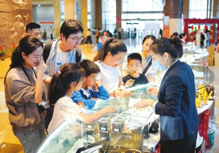 4月30日,運城博物館里,“運城禮物”非遺市集熱鬧開市?!昂谀嗝苷Z”護膚套盒、關公銀像、《河東十三邑 中華編年史》讀寫繪……極具代表性的非遺文創(chuàng)產(chǎn)品和13個縣(市、區(qū))的特色禮物一同精彩亮相。眼下,運城博物館5個文創(chuàng)商店、3個網(wǎng)絡平臺,已同步上線銷售385種文創(chuàng)產(chǎn)品。