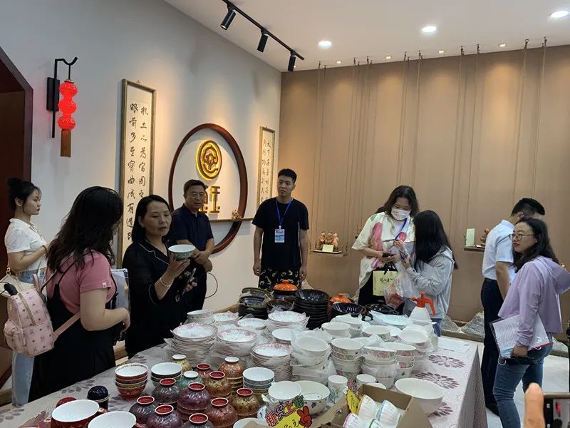 記者團(tuán)成員在瑩玉陶瓷采訪(fǎng)。記者楊惠生攝