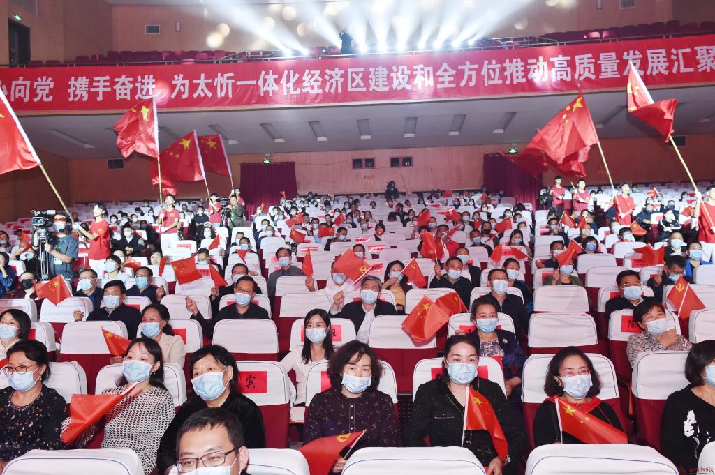 氣勢磅礴的合唱伴舞《領(lǐng)航》拉開了演出的序幕。歌伴舞《忻州古城等你來》帶你走進(jìn)千年古城、走進(jìn)詩情畫意的“康養(yǎng)忻州”,領(lǐng)略晉北文化;音詩畫朗誦《奮進(jìn)新征程 建功新時(shí)代》表達(dá)了各民主黨派精誠合作,為全方位推動(dòng)忻州高質(zhì)量發(fā)展凝聚強(qiáng)大政治力量的信心和決心;歌曲《太忻情》帶領(lǐng)大家聆聽忻州全方位推動(dòng)高質(zhì)量發(fā)展的鏗鏘步伐,感受如火如荼、方興未艾的建設(shè)場面;《擼起袖子加油干》重溫了習(xí)近平總書記殷殷囑托;河曲二人臺(tái)《歡天喜地迎盛會(huì)》讓我們堅(jiān)信即將召開的二十大必將帶領(lǐng)全國人民從勝利走向勝利;情景劇《在正道上行》再現(xiàn)了民營企業(yè)家有大愛、有擔(dān)當(dāng)、無私奉獻(xiàn)助力鄉(xiāng)村振興和經(jīng)濟(jì)社會(huì)全面發(fā)展的情景,讓在場的每個(gè)人都深受感染;《騰飛吧,晉龍》《風(fēng)雪長征》《山丹丹開花紅艷艷》《親吻祖國》《紅旗飄飄》《為祖國干杯》……一首首歌曲昂揚(yáng)向上,一段段舞蹈剛勁有力,令人精神振奮、激情滿懷,唱響了朝氣蓬勃、同心追夢的時(shí)代旋律,唱出了全市人民熱愛家鄉(xiāng)、建設(shè)家鄉(xiāng)的共同情懷,表達(dá)了忻州兒女奮進(jìn)新征程、建功新時(shí)代的壯志豪情。