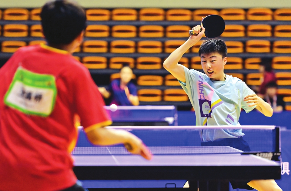 八月十一日,在省第十六屆運(yùn)動(dòng)會(huì)乒乓球男子甲組的比賽中,太原選手劉冠成(正面)擊敗大同對(duì)手王滿橋獲得冠軍。