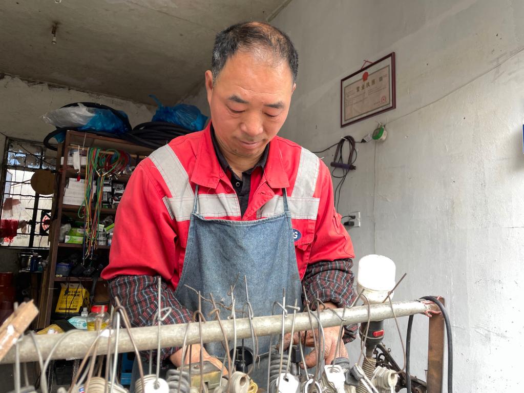 在胡師傅修車(chē)鋪內(nèi),一張個(gè)體戶營(yíng)業(yè)執(zhí)照格外醒目。 新華社記者 程思琪攝