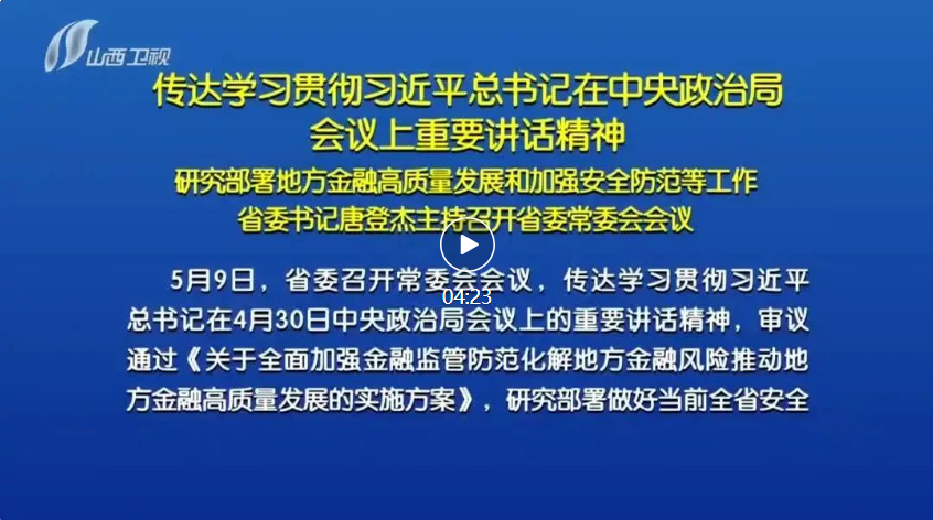 山西日報報道 5月9日,省委召開常委會會議,傳達學習貫徹習近平總書記在4月30日中央政治局會議上的重要講話精神,審議通過《關(guān)于全面加強金融監(jiān)管防范化解地方金融風險推動地方金融高質(zhì)量發(fā)展的實施方案》,研究部署做好當前全省安全防范工作。省委書記唐登杰主持會議。