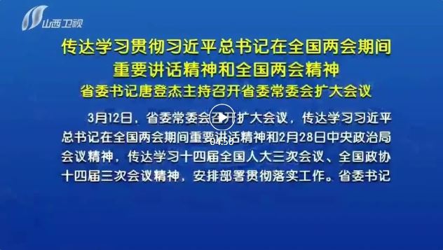 山西日?qǐng)?bào)報(bào)道3月12日,省委常委會(huì)召開擴(kuò)大會(huì)議,傳達(dá)學(xué)習(xí)習(xí)近平總書記在全國(guó)兩會(huì)期間重要講話精神和2月28日中央政治局會(huì)議精神,傳達(dá)學(xué)習(xí)十四屆全國(guó)人大三次會(huì)議、全國(guó)政協(xié)十四屆三次會(huì)議精神,安排部署貫徹落實(shí)工作。省委書記唐登杰主持會(huì)議。