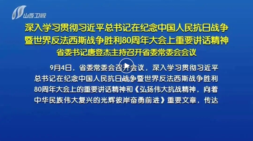 會議指出,習(xí)近平總書記在紀(jì)念中國人民抗日戰(zhàn)爭暨世界反法西斯戰(zhàn)爭勝利80周年大會上的重要講話,全面回顧了中國人民抗日戰(zhàn)爭的偉大歷程,深刻闡釋了抗戰(zhàn)勝利的重大意義,再次宣示了中國人民“銘記歷史、緬懷先烈、珍愛和平、開創(chuàng)未來”的堅定立場,具有很強的政治性、思想性、戰(zhàn)略性和指導(dǎo)性,必將激揚起為實現(xiàn)中華民族偉大復(fù)興、推動構(gòu)建人類命運共同體而奮斗的磅礴偉力。全省上下要堅持以習(xí)近平新時代中國特色社會主義思想為指導(dǎo),深入學(xué)習(xí)貫徹習(xí)近平總書記重要講話精神,深刻領(lǐng)悟“兩個確立”的決定性意義,堅決做到“兩個維護”,堅定不移走中國特色社會主義道路,傳承和弘揚偉大抗戰(zhàn)精神,踔厲奮發(fā)、勇毅前行,努力在推動資源型經(jīng)濟轉(zhuǎn)型發(fā)展上邁出新步伐,奮力譜寫三晉大地推進中國式現(xiàn)代化新篇章。要充分發(fā)揮我省紅色文化資源豐富的優(yōu)勢,做好抗戰(zhàn)史研究闡釋工作,更加注重用黨的優(yōu)良革命傳統(tǒng)和作風(fēng)教育人,教育引導(dǎo)全省廣大黨員干部群眾堅定歷史自信、增強歷史主動,賡續(xù)紅色血脈、激發(fā)愛國熱情,把偉大抗戰(zhàn)精神一代代傳下去。要進一步增強牢記囑托、感恩奮進、頑強拼搏、真抓實干的斗志,堅定扛牢國家資源型經(jīng)濟轉(zhuǎn)型綜改試驗區(qū)建設(shè)、深化能源革命、打造內(nèi)陸地區(qū)對外開放新高地、促進中部地區(qū)加快崛起、推動黃河流域生態(tài)保護和高質(zhì)量發(fā)展等重大使命任務(wù),扎實推動高質(zhì)量發(fā)展,不斷深化全方位轉(zhuǎn)型,統(tǒng)籌好發(fā)展和安全,努力完成全年經(jīng)濟社會發(fā)展目標(biāo)任務(wù),確?!笆奈濉表樌展?、“十五五”良好開局。要堅持黨的全面領(lǐng)導(dǎo),堅定扛牢管黨治黨政治責(zé)任,不斷提高各級黨組織的政治領(lǐng)導(dǎo)力、思想引領(lǐng)力、群眾組織力、社會號召力,以永遠在路上的堅韌和執(zhí)著推進全面從嚴(yán)治黨,有力引領(lǐng)保障全省高質(zhì)量發(fā)展和現(xiàn)代化建設(shè)。
