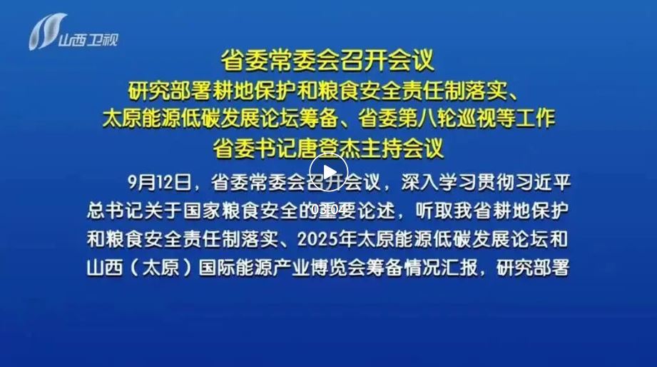 9月12日,省委常委會召開會議,深入學(xué)習(xí)貫徹習(xí)近平總書記關(guān)于國家糧食安全的重要論述,聽取我省耕地保護和糧食安全責(zé)任制落實、2025年太原能源低碳發(fā)展論壇和山西(太原)國際能源產(chǎn)業(yè)博覽會籌備情況匯報,研究部署十二屆省委第八輪巡視工作。省委書記唐登杰主持會議。