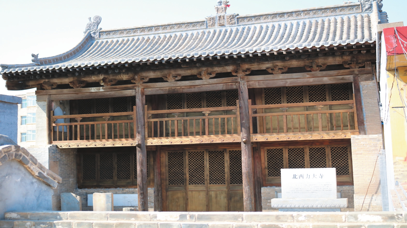 北西力大寺位于定襄縣晉昌鎮(zhèn)北西力村中,坐北朝南,東西長11.1米、南北寬8.4米,占地面積約93平方米。據梁架題記記載為明萬歷四十三年(1615)所建。該寺沿中軸線原建有山門、過廳、正殿,兩側建有東西配房?,F僅存正殿,為二層樓閣式結構,面寬三間,進深四椽,前設廊,單檐懸山頂,五檁架結構。二層廊前兩側有人物壁畫約4平方米。2015年8月25日公布為市級文物保護單位。