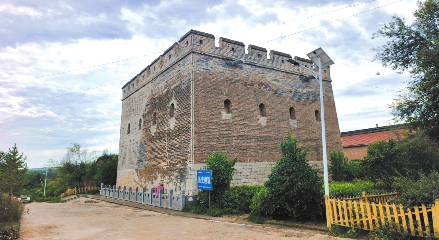 郭家河靖邊樓位于五寨縣東秀莊鄉(xiāng)郭家河村。據(jù)縣志考證,此樓建于明代萬歷年間,坐北朝南,平面呈正方形,邊長(zhǎng)約16米,占地面積約259平方米。通高11米,頂部設(shè)垛口,內(nèi)部形制為環(huán)形,磚砌拱券,四面布箭窗。靖邊樓南面正中為拱券石門,門額鑲嵌石匾,四周雕刻云勾紋,上刻楷書“靖邊樓”,下刻落款“山西路管轄太原……岢嵐?fàn)I守部指揮趙恭”等字樣。靖邊樓堡墻長(zhǎng)約1600米,基寬3至6米,殘高5至7米,夯層厚度10至15厘米。靖邊樓作為明代保境安民的邊塞防御體系,對(duì)明代中期邊防軍事部署研究具有重要作用,具有較高的歷史價(jià)值、藝術(shù)價(jià)值和科學(xué)價(jià)值。