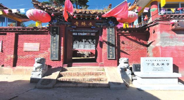 下莊文殊寺位于五臺(tái)縣東雷鄉(xiāng)下莊村中,始創(chuàng)年代不詳,現(xiàn)存建筑為明代所建。寺廟坐北向南,占地面積368平方米。山門一間,中置板門。正殿面寬三間、進(jìn)深五椽,前出廊(此走廊屬清代遺構(gòu),為后期加接),廊柱施斗拱,大斗口內(nèi)出跳,兩側(cè)帶有雕花翼拱。檐柱頭斗拱為五踩,其下昂已被鋸掉(現(xiàn)存昂嘴為清代更換的如意昂式);平身科斗拱亦為五踩。當(dāng)心間設(shè)門,兩次間設(shè)直欞窗。
