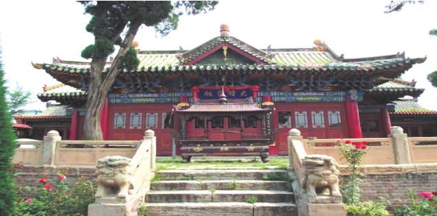 泰山廟位于原平市崞陽鎮(zhèn)平定街村。據(jù)清《崞縣志》記載,創(chuàng)建于元至治三年(1323)。明、清均有修葺。坐北朝南,東西長31.8米,南北寬52.3米,占地面積約1663平方米。中軸線僅存正殿,兩側(cè)為東西配殿及耳房。正殿及東西配殿為明代遺構(gòu),余為清代遺存。正殿石砌臺基,前設(shè)月臺,上置勾欄、望柱,面寬五間,進深五椽,單檐懸山頂,六檁前廊式構(gòu)架,斗拱五踩,單翹單昂,裝修原制不存。正殿前建有抱廈三間,單檐歇山頂?,F(xiàn)新塑像23尊。
