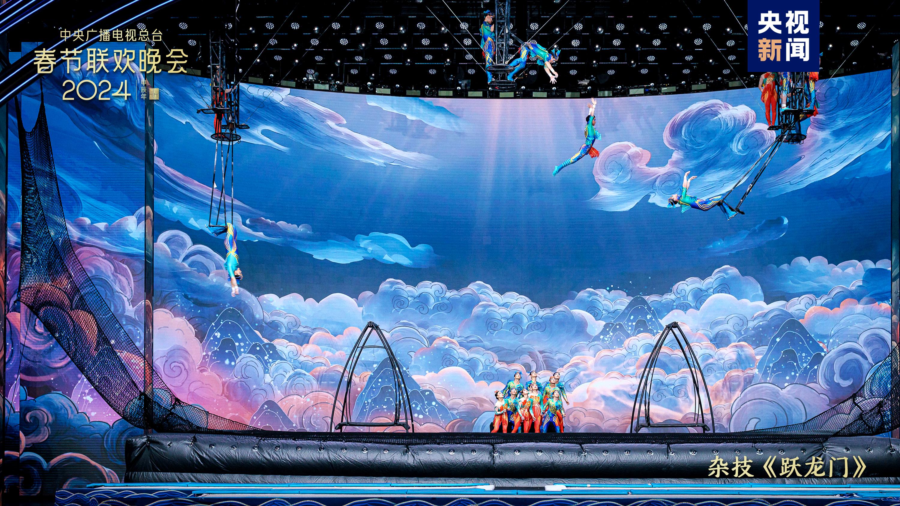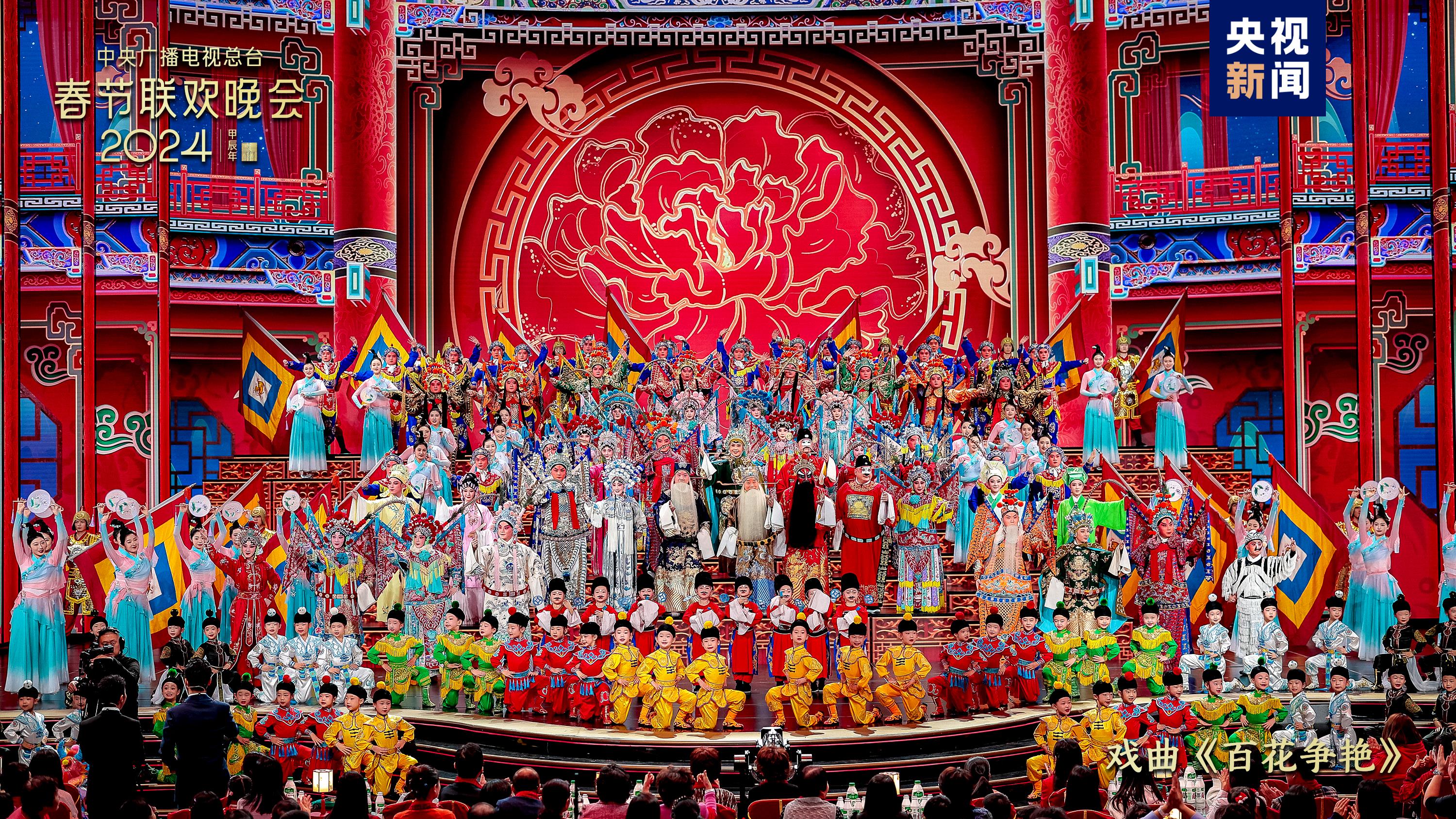 戲曲節(jié)目《百花爭艷》中,老少中青群英會,演繹百萬金戈鐵馬、千年戀愛傳奇,國家級非物質(zhì)文化遺產(chǎn)潮劇首次在總臺春晚舞臺綻放華彩。雜技《躍龍門》結(jié)合競技體育項目“蹦床”和雜技“浪橋飛人”,表現(xiàn)出奮勇向前、更上層樓的干勁闖勁。陜西西安分會場全民齊誦詩詞歌賦,恢宏大氣的《山河詩長安》令人詩情澎湃、暢懷無限;多民族載歌載舞、共賀新春,新疆喀什分會場的《舞樂新疆》節(jié)奏歡快氣氛熱烈,展現(xiàn)石榴籽一樣緊緊抱在一起的各民族一家親。