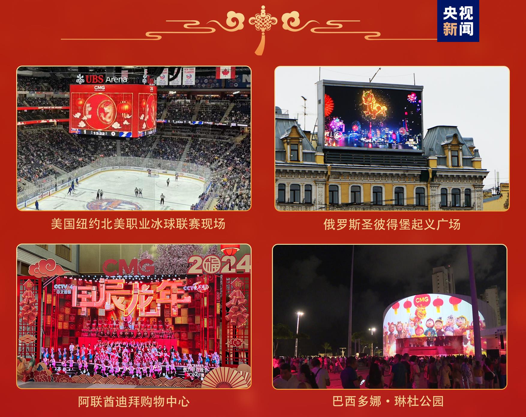 全球看春晚。作為聯(lián)合國大會將農(nóng)歷新年列為聯(lián)合國假日后的首個新年,總臺主辦的“春晚序曲 全球看春晚”活動在美國、肯尼亞、瑞士等多國舉辦近40場;各大洲49個國家、90座城市的3000余塊公共大屏直播和宣介總臺春晚;世界最高建筑迪拜哈利法塔、非洲第一高樓埃及新行政首都中央商務(wù)區(qū)標志塔、瑞典斯德哥爾摩市中心國王花園廣場、巴西多娜·琳杜公園等多個全球地標性建筑上演春晚燈光秀……靈動吉祥的“龍辰辰”將中國新年的美好祝愿傳遍全球。
