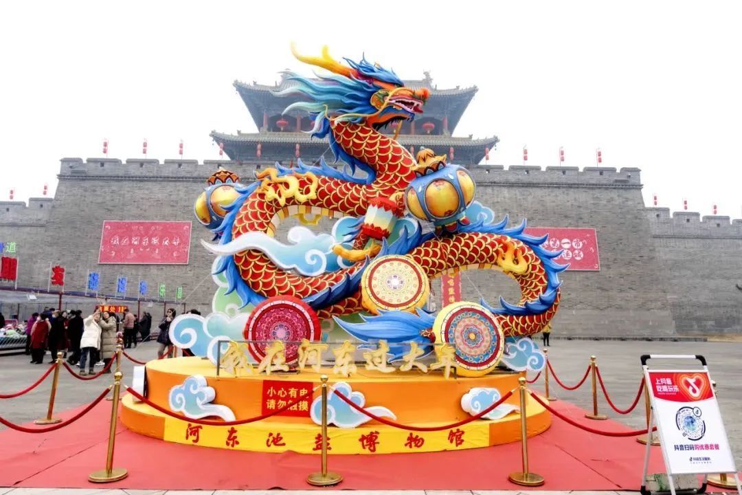 在運(yùn)城,河?xùn)|池鹽文化博覽園的龍年燈會上游人如織,春節(jié)喜慶氛圍濃郁;