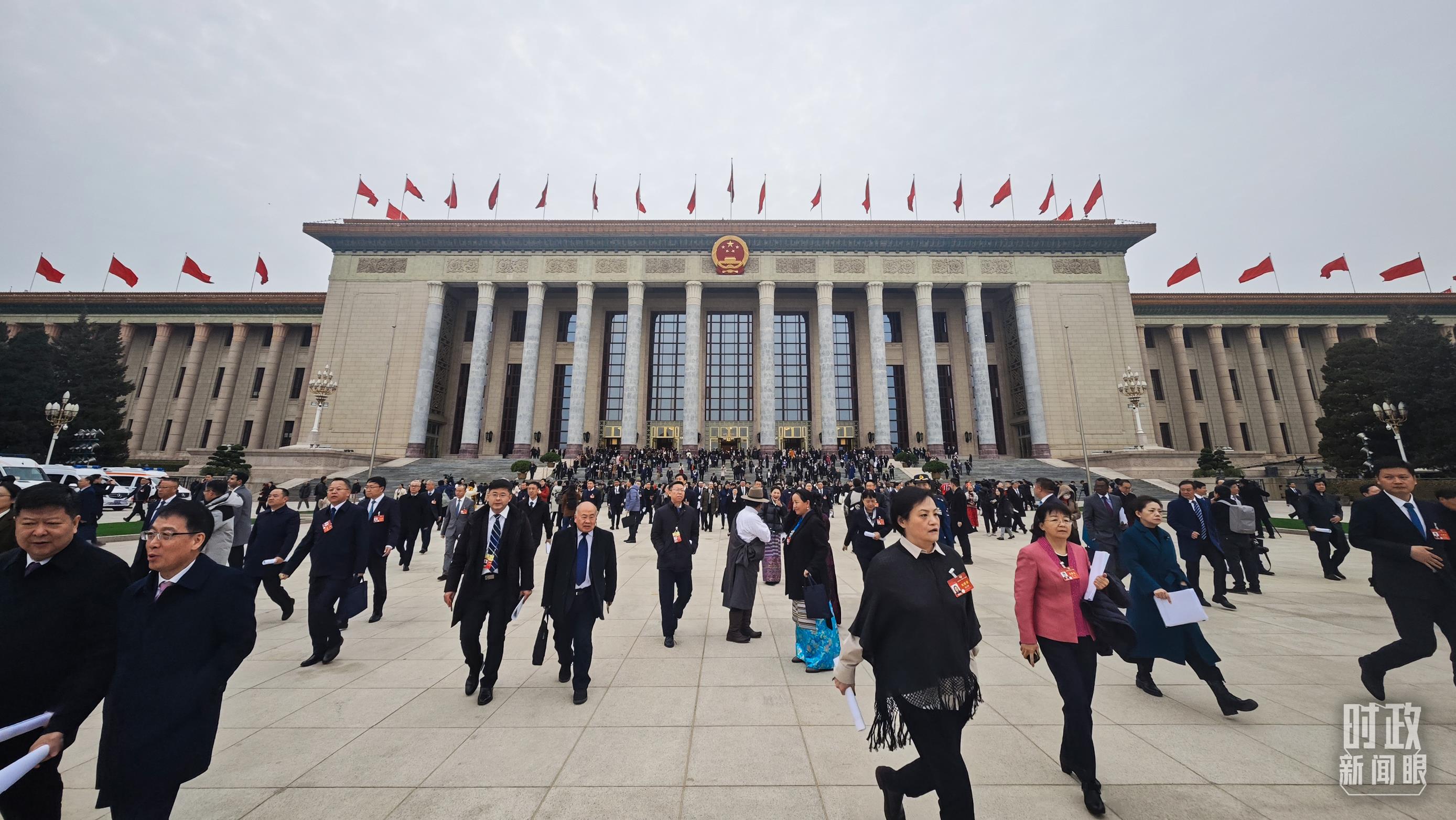 △3月4日,人民大會(huì)堂,政協(xié)委員們?cè)陂_(kāi)幕會(huì)后離場(chǎng)。(總臺(tái)央視記者彭漢明拍攝)