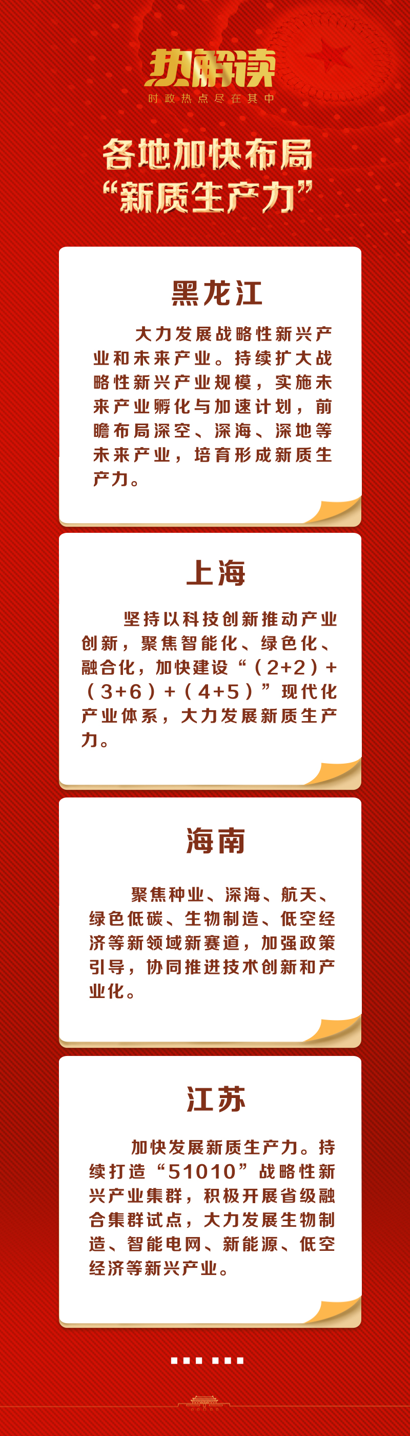 加快發(fā)展新質(zhì)生產(chǎn)力已成為2024年推進(jìn)經(jīng)濟社會高質(zhì)量發(fā)展的主旋律。各地?fù)屪C遇,紛紛布局。在各省區(qū)市2024年政府工作報告中,多地將加快培育新質(zhì)生產(chǎn)力列為重點工作任務(wù)。