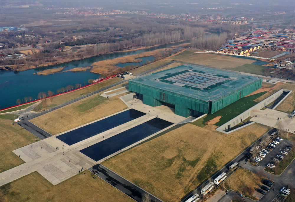 這是2024年2月26日拍攝的位于河南省安陽市的殷墟博物館新館(無人機(jī)照片)。新華社記者 李安 攝 “就在8天前,大氣磅礴的殷墟博物館新館正式建成開放了……歡迎大家赴一場與商文明的千年之約?!?日上午,十四屆全國人大二次會議首場代表通道上,來自中國社會科學(xué)院考古研究所安陽工作站的何毓靈代表,面向中外記者講述了殷墟的故事。