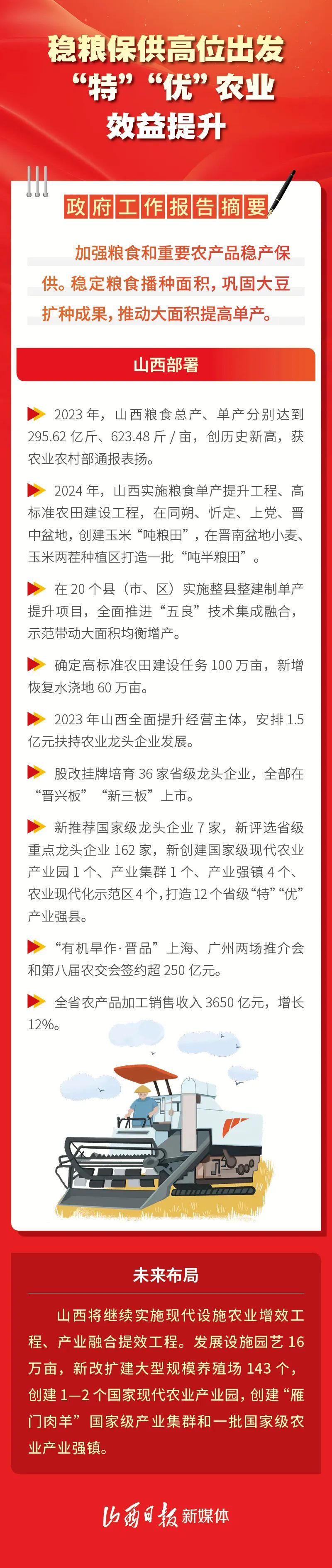 今年,山西將圍繞“穩(wěn)糧保供、學(xué)習(xí)運(yùn)用‘千萬工程’經(jīng)驗、鞏固拓展脫貧攻堅成果”三件大事,實施九大工程,加快推進(jìn)農(nóng)業(yè)農(nóng)村現(xiàn)代化,扎實推進(jìn)鄉(xiāng)村全面振興。
