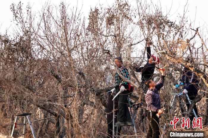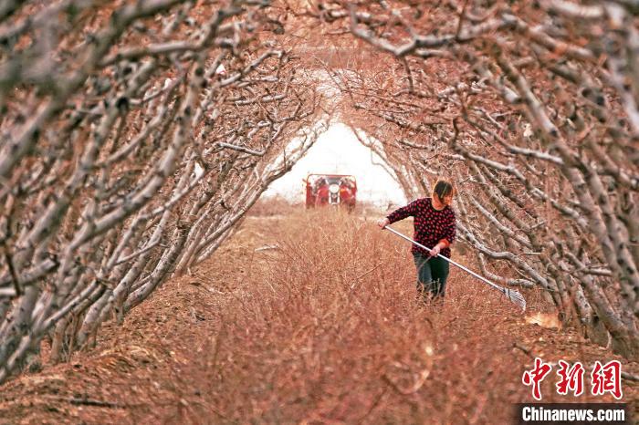 桃農(nóng)正加緊修剪清理油桃樹上的枯枝。高新生 攝