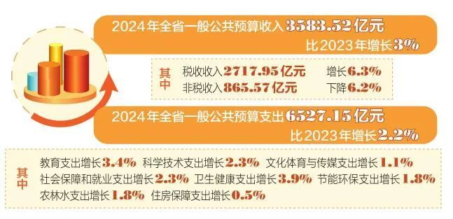 數(shù)據(jù)增減之間,政策變動背后,反映著政府資金投向,傳遞著政策動向,回應著百姓期盼。2024年是中華人民共和國成立75周年,是實現(xiàn)“十四五”規(guī)劃目標任務的關鍵一年。今年的預算報告有哪些重點安排?其中有哪些“大賬”“細賬”值得關注?翻開“2024年省級財政預算賬本”,一系列關系經(jīng)濟發(fā)展和社會民生的重要問題,都可以找到答案。 推動開源增收 夯實財政之基 山西省委十二屆七次全會暨省委經(jīng)濟工作會議、省兩會對2024年全省財政工作做出具體部署,強調(diào)今年要堅持穩(wěn)中求進、以進促穩(wěn)、先立后破,積極的財政政策要適度加力、提質增效。 如何“適度加力、提質增效”? “全省財政部門要抓住關鍵、把好力度,準確把握‘適度加力’的內(nèi)涵要求,適度擴大財政支出規(guī)模,促進經(jīng)濟持續(xù)回升向好。準確把握‘提質增效’的內(nèi)涵要求,加強財政管理,強化與其他宏觀政策協(xié)同聯(lián)動,把同樣的錢花出更大的成效?!比∝斦ぷ鲿?,省財政廳黨組書記、廳長常國華表示。 收支管理是財政工作的核心。按照政府預算報告,2024年全省一般公共預算收入3583.52億元,比2023年增長3%。其中,稅收收入2717.95億元,增長6.3%;非稅收入865.57億元,下降6.2%。全省一般公共預算支出6527.15億元,比2023年增長2.2%。其中,教育支出增長3.4%,科學技術支出增長2.3%,文化體育與傳媒支出增長1.1%,社會保障和就業(yè)支出增長2.3%,衛(wèi)生健康支出增長3.9%,節(jié)能環(huán)保支出增長1.8%,農(nóng)林水支出增長1.8%,住房保障支出增長0.5%。 2024年,山西省財政將持續(xù)推進財源建設,推動各項減稅降費政策持續(xù)落地見效,確保各項稅費優(yōu)惠精準直達,效應充分釋放,實現(xiàn)“放水養(yǎng)魚”“水深魚歸”的良性循環(huán)。動態(tài)掌握經(jīng)濟稅源底數(shù)、稅源結構分布情況,保持稅源穩(wěn)中有增。緊緊圍繞“經(jīng)濟、政策、征管”三大因素,科學開展收入形勢分析研判,加強收入征管,強化上下聯(lián)動、橫向互動、多方協(xié)作的收入共治機制,全過程、全環(huán)節(jié)抓好收入組織,嚴防“跑冒滴漏”。堅持“抓大不放小”原則,加強對重點稅源、重點企業(yè)監(jiān)控和分析比對,督促營利性組織依法納稅。進一步深挖非稅潛力,激發(fā)土地交易市場活力,合理調(diào)節(jié)礦業(yè)資源收入,進一步加強國有資本收益收取。加力對接中央政策,進一步健全完善爭取中央政策資金工作機制,全力爭取專項債券、國債資金、中央預算內(nèi)投資和試點示范等競爭性分配項目資金,推動更多國家試點示范項目在山西省落地。 同時,預算報告指出,強化過緊日子,嚴控“三公”經(jīng)費和一般性支出。2024年省級“三公”經(jīng)費預算在連續(xù)10年壓減的基礎上,繼續(xù)堅持只減不增,預算安排3.26億元,減少0.01億元,下降0.3%。對行政參公單位、部門預算執(zhí)行進度低于80%、審計查出問題部門的一般性支出分別壓減5%,共壓減支出1.5億元。大力調(diào)整優(yōu)化支出結構。在省直各部門充分理解和大力支持配合下,共取消壓減154.7億元,其中,對存量項目支出進行全面清理,騰出的資金用于保障省委、省政府決策的各項新增重點支出,并強化項目儲備,提高財政資金使用績效。 保障大事要事 增添發(fā)展之力 今年的政府工作報告和預算報告均指出,積極的財政政策要加力提效?!凹恿Α本烤辜釉谀男┑胤??作為要素保障部門,服務保障重大戰(zhàn)略始終是財政義不容辭的責任使命。 預算報告明確,強化財力統(tǒng)籌,集中財力保障重大戰(zhàn)略。即編制5張大事要事保障清單,安排806.7億元支持山西省轉型發(fā)展、教育科技和人才支撐、推動城鄉(xiāng)融合區(qū)域協(xié)調(diào)發(fā)展、黃河流域生態(tài)保護和高質量發(fā)展、保障和改善民生等重大戰(zhàn)略任務。同時,落實好減稅降費政策,推進國資國企改革,加力拓展政采智貸業(yè)務,安排40億元深入實施高等教育“百億工程”。 促進轉型發(fā)展。2024年,省級技術改造專項資金在20億元的基礎上,規(guī)模再增加5億元。支持煤炭、鋼鐵、焦化、有色、建材、傳統(tǒng)制造等加大技術改造提升力度,支持引進和培育高端裝備制造、新材料、新能源汽車、節(jié)能環(huán)保等產(chǎn)業(yè),支持非常規(guī)天然氣增儲上產(chǎn),支持加快發(fā)展信創(chuàng)、半導體、光電子信息、智能終端等核心產(chǎn)業(yè),支持中小企業(yè)上規(guī)升級、規(guī)范化股份制改造和“專精特新”發(fā)展等。 穩(wěn)投資促消費。2024年,完善財政性資金競爭存放指標體系,引導撬動金融資源更多投向“大事要事”。借助各種基金、開發(fā)性低息貸款、融資擔保等金融工具,吸引更多金融資本和民間投資流向重大項目建設。同時,落實好國家及山西省恢復和擴大消費的系列政策,提振新能源汽車、家電等大宗消費,支持剛性和改善性住房需求,結合實際研究出臺消費補助、消費信貸、門票優(yōu)惠、企業(yè)獎補等擴大消費政策,進一步激發(fā)消費活力。 推動城鄉(xiāng)融合、區(qū)域協(xié)調(diào)發(fā)展。2024年—2027年,累計籌集資金102億元,支持全省建設1000個以上精品示范村、10000個以上村實現(xiàn)提檔升級。安排資金1.9億元,對全面推進鄉(xiāng)村振興