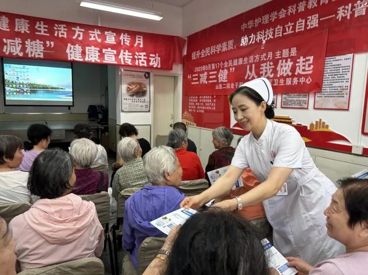 除了慢病管理工作室,山醫(yī)大二院社區(qū)還聯(lián)合轄區(qū)山醫(yī)大二院老干部科、杏花嶺社區(qū)衛(wèi)生服務(wù)中心,開設(shè)健康知識講座,邀請山醫(yī)大二院專家為老年群體講授“減鹽、減油、減糖”、壓瘡專業(yè)護(hù)理、高血壓保健等方面的健康知識。
