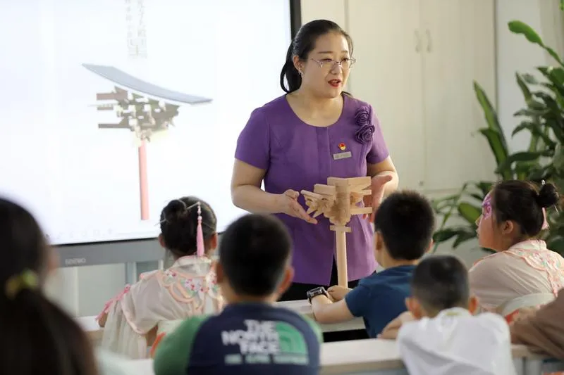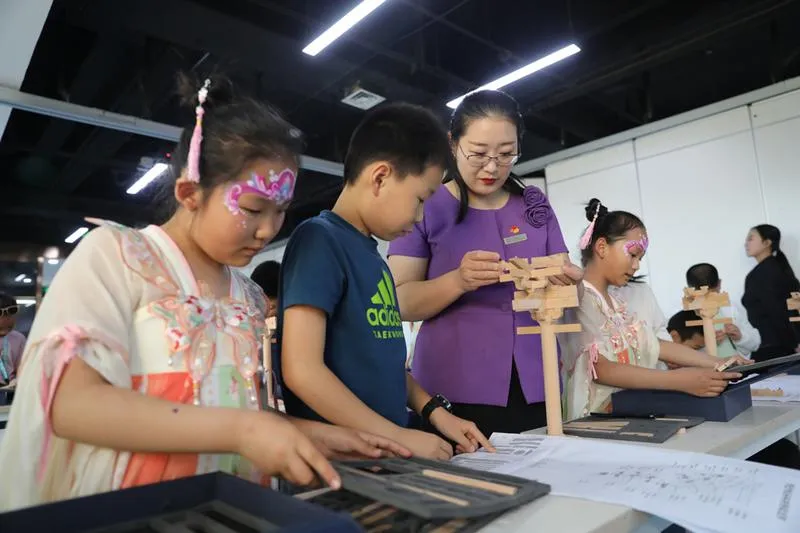 在古建小課堂斗拱搭建中,省博物院老師選取中國古代建筑最關(guān)鍵也是最有特色的斗拱為原型,指導(dǎo)同學(xué)們制作了五臺山佛光寺唐代斗拱模型。不僅可以了解山西古代輝煌燦爛的建筑文化,還可以親自動手,體驗(yàn)唐代斗拱的搭建,感受古代木作匠師的智慧,增進(jìn)對中國古代建筑文化的了解。