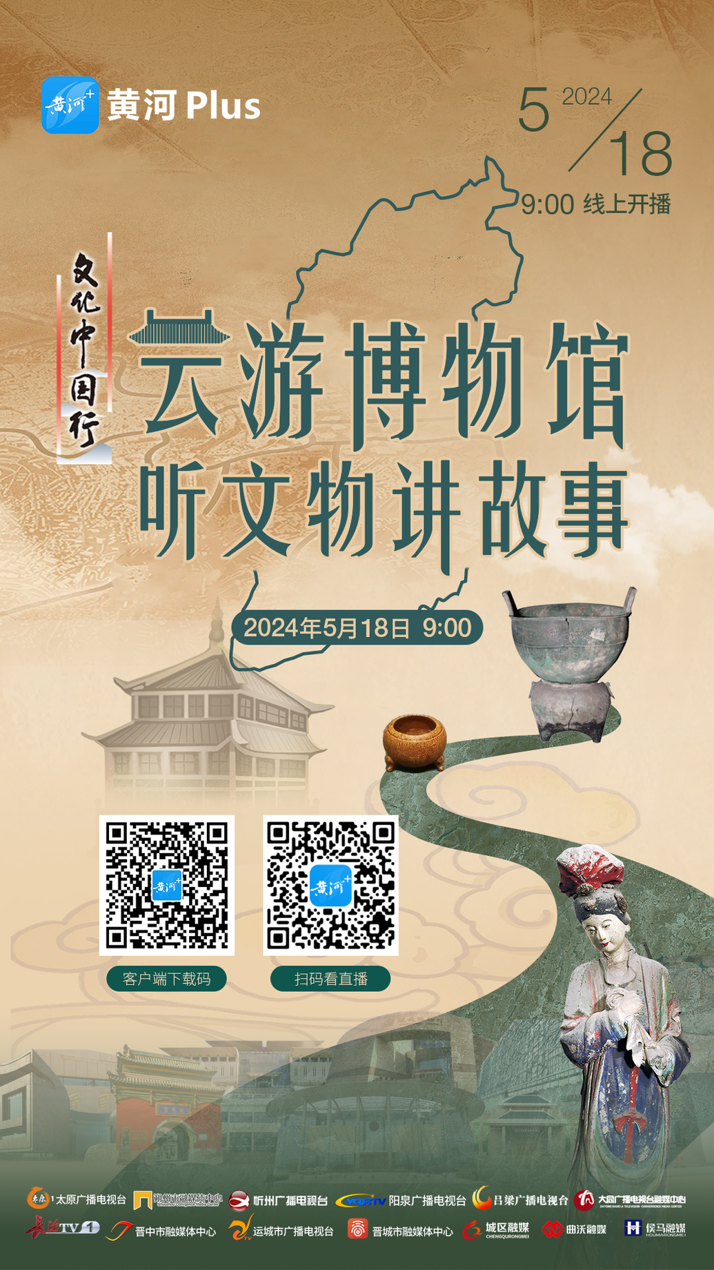 5月18日上午9時,山西廣播電視臺視聽融媒體中心黃河Plus客戶端將聯(lián)合山西廣播電視臺晉南工作站、侯馬市融媒體中心、大同廣播電視臺融媒體中心、朔州市融媒體中心、忻州廣播電視臺、陽泉廣播電視臺新聞綜合頻道、呂梁廣播電視臺、晉中市融媒體中心、太原廣播電視臺新聞事業(yè)部、長治廣播電視臺新聞綜合頻道、晉城市融媒體中心、晉城市城區(qū)融媒體中心、運城市廣播電視臺融媒體新聞中心、曲沃縣融媒體中心等15家執(zhí)行媒體單位(排名不分先后),對此次直播活動進行全方位推介,敬請期待!
