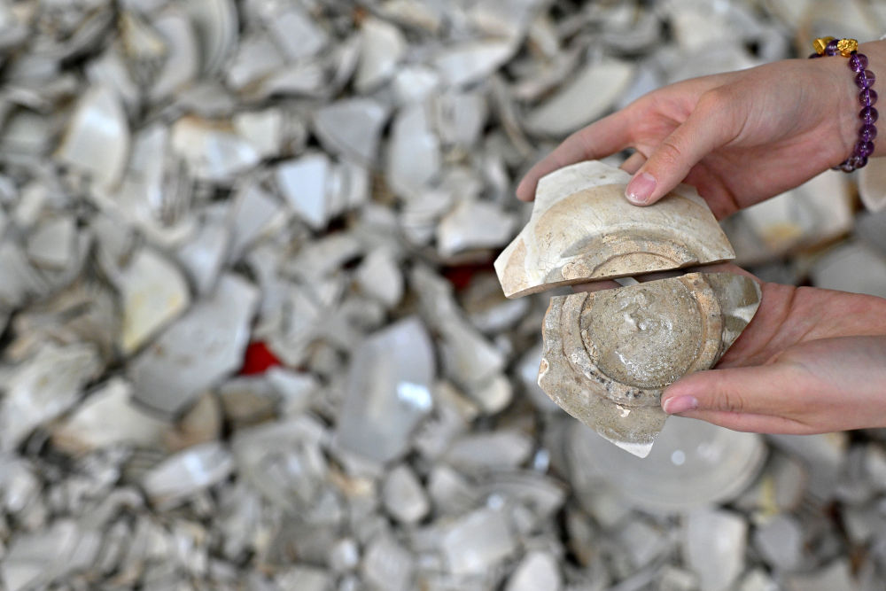 在云岡研究院可移動文物修復(fù)室,工作人員高嘉珩在進(jìn)行瓷器修復(fù)(2024年2月26日攝)。