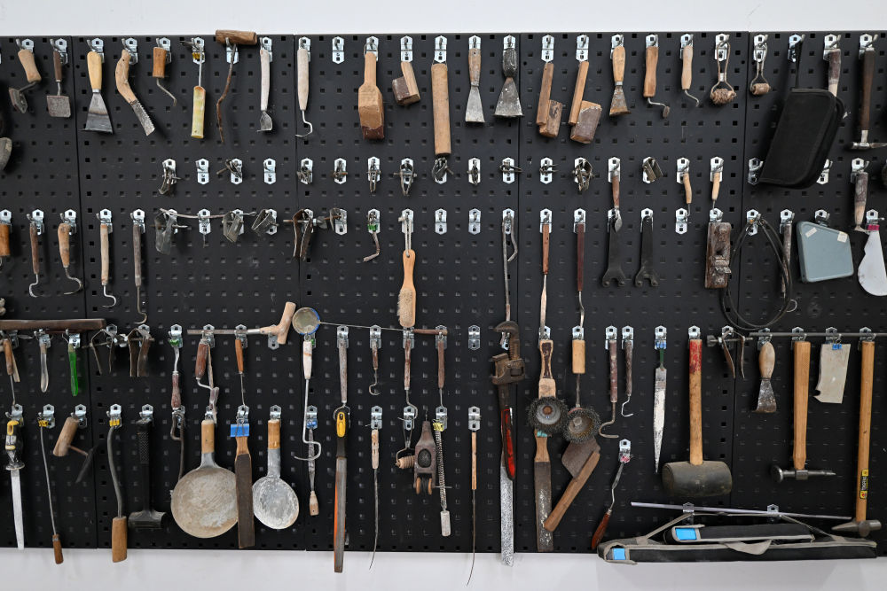 云岡研究院可移動文物修復(fù)室墻上用于修復(fù)文物的工具(2024年2月26日攝)。