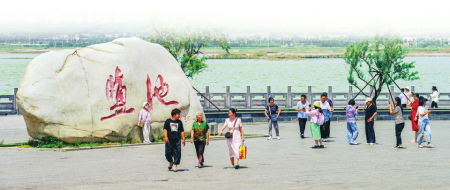 5月19日,游客在運城市鹽湖觀景臺參觀游覽。閆鑫攝