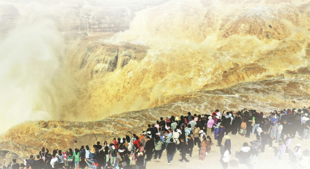 “壺口”的稱謂,最早見于《尚書·禹貢》中,如“既載壺口,治梁及岐”“壺口、雷首,至于太岳”,都與傳說中大禹治水的路線與策略有關(guān),壺口是大禹治水的始發(fā)之地。黃河壺口瀑布旅游區(qū)是國家5A級旅游景區(qū),是中國第二大瀑布,全世界最大的黃色瀑布。站在壺口觀景臺往上看,只見洶涌的黃河水簇?fù)碇?、吶喊著撲到眼前,其勢如千軍萬馬,漫山遍野般涌來,到了壺口,那一排排的巨浪在翻著水花馳騁飛奔中,突然墜入深坑,發(fā)出了震耳的嘶鳴聲,濺起了漫天水霧,再簇?fù)碇枷蜻h(yuǎn)方……而此時的你,只會感覺到大自然的偉岸和自己的渺小。