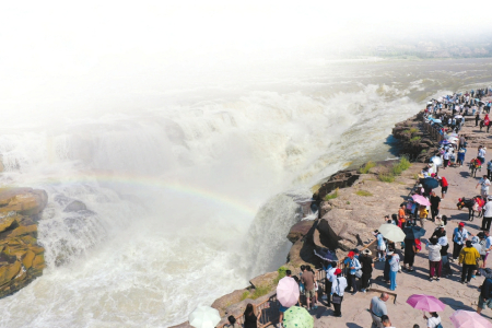 7月21日,游客在壺口瀑布觀賞。呂桂明攝