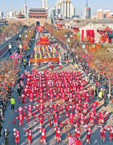 2月9日,民間藝人在平遙古城內表演傳統民俗社火,喜迎元宵佳節(jié)。梁生仁攝