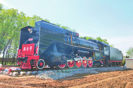 如今,大東溝成了煤礦生產(chǎn)設(shè)備的“露天博物館”,陳列著井下使用過(guò)的綜采支架、掘進(jìn)機(jī)、齒軌車、風(fēng)機(jī)、高壓開(kāi)關(guān)、移動(dòng)變電站、礦用潛水泵等40余種、近300件設(shè)備,為中國(guó)煤礦不同歷史發(fā)展階段保留了珍貴標(biāo)本。其中,有兩處展品更為引人注目:一是一臺(tái)時(shí)速80公里、牽引力324千牛的前進(jìn)型蒸汽機(jī)車,1975年由大同機(jī)車廠生產(chǎn),1994年由潞安集團(tuán)統(tǒng)一安排承擔(dān)石圪節(jié)煤礦和兄弟礦井的煤炭外運(yùn)及漳澤電廠的煤炭直送任務(wù),是潞安集團(tuán)首批鐵路運(yùn)輸牽引機(jī)車,直到2007年機(jī)車轉(zhuǎn)型升級(jí)后停用。如今,這臺(tái)蒸汽機(jī)車已經(jīng)成為一代人的記憶,也是不少人打卡的網(wǎng)紅地標(biāo)。還有一處是給人留下深刻印象的軌道墻。兩道長(zhǎng)6米的水泥墻,墻體里鑲嵌著從石圪節(jié)井下運(yùn)上來(lái)的標(biāo)有不同年代的道軌,如產(chǎn)于1902年的德國(guó)道軌、產(chǎn)于1905年的比利時(shí)道軌、產(chǎn)于1915年的由漢陽(yáng)鐵廠制造的道軌等。這些標(biāo)有生產(chǎn)年代的道軌,當(dāng)年在井下作為支撐物或巷道頂棚使用,如今成為石圪節(jié)煤礦發(fā)展歷程的見(jiàn)證,默默地向人們?cè)V說(shuō)石圪節(jié)開(kāi)采歷史的久遠(yuǎn)。