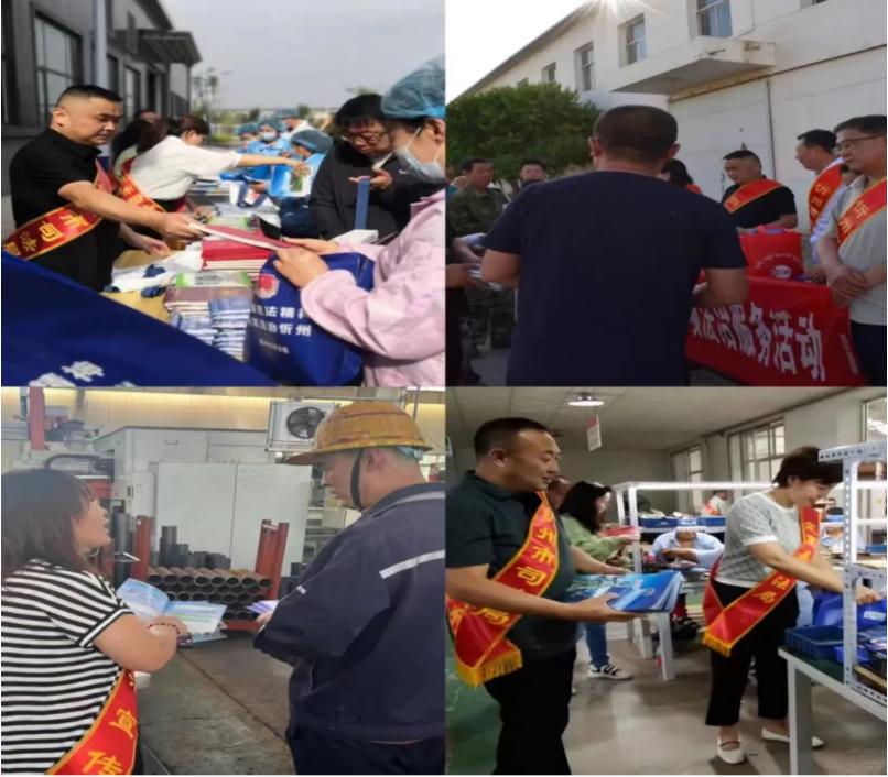 法律服務(wù)團(tuán)向企業(yè)管理人員及職工發(fā)放《憲法》500本、《民法典》以及《民法典進(jìn)企業(yè)》10000本、《合同法》5000本、《山西省優(yōu)化營商環(huán)境條例》4000本、以及《行政復(fù)議法》400本和其他法律法規(guī)書籍;發(fā)放公證證明材料清單1000本、100份便民聯(lián)系卡和法律政策明白卡,毛巾300份、圍裙300份、水杯300個(gè)、筆記本300本、雨傘100把等法治宣傳用品。同時(shí),講解法律案例,宣講涉企公證、鑒定和仲裁知識(shí),將法治宣傳與企業(yè)日常生產(chǎn)、經(jīng)營管理以及員工生活聯(lián)系起來,為企業(yè)發(fā)展?fàn)I造良好法治環(huán)境。