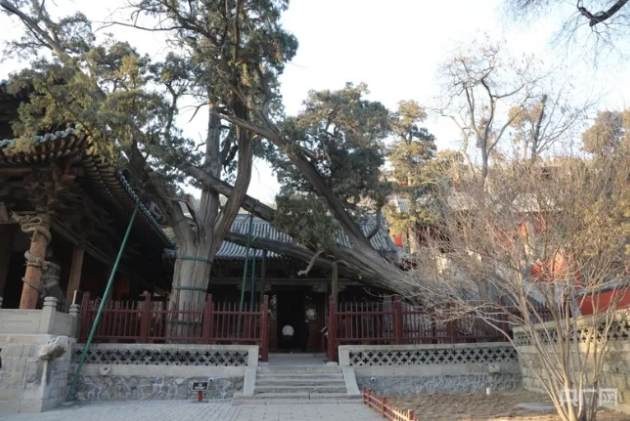 宋代彩塑的杰出代表——侍女像(央廣網(wǎng)記者 郎麒 攝) 三千年晉祠的“見證者”——周柏。周柏長于圣母殿右側(cè),18米長的周柏向南傾斜生長,被另一株古柏所支撐,樹葉披覆在圣母殿頂,樹干粗壯,得幾人才能合抱,像一條橫臥的巨龍,因此有“臥龍柏”之美譽(yù)。經(jīng)科學(xué)測定,此樹已有二千九百九十多歲。在晉祠,樹齡在千年以上的蒼松、翠柏、古槐等尚存二十余株,它們和古柏一起見證著晉祠的悠悠歷史。