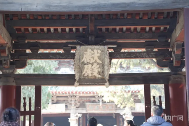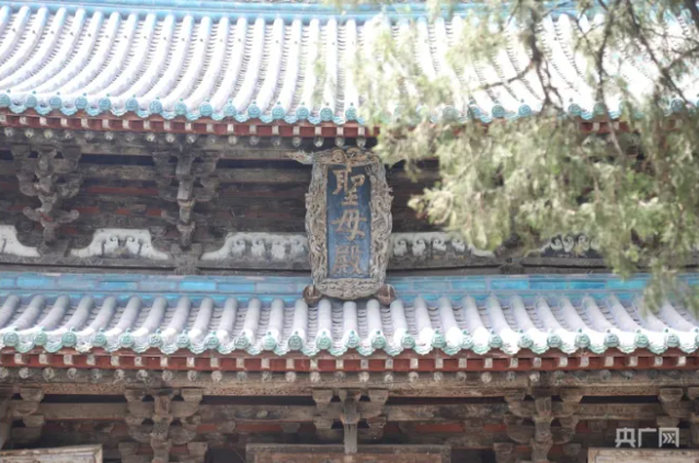 獻(xiàn)殿(央廣網(wǎng)記者 郎麒 攝) 晉祠“三匾” “難老”匾?!半y老”匾是難老泉亭的匾額,長1.45米,寬0.7米,是明末清初著名的思想家、文學(xué)家、詩人、醫(yī)學(xué)家、書畫家傅山所題?!半y老”二字出自《詩經(jīng)》中“永錫難老”,意味生生不息,青春永駐,其用筆蒼勁,頗具神韻。 “水鏡臺(tái)”匾。水鏡臺(tái)是一座古戲臺(tái),懸掛匾額“水鏡臺(tái)”。“水鏡”之名取自《漢書》名句“清水明鏡不可以形逃”,寓意為人世間的善惡忠奸盡人皆知。此匾由清乾隆翰林、著名書法家楊二酉所題,書體清秀,筆力遒勁。