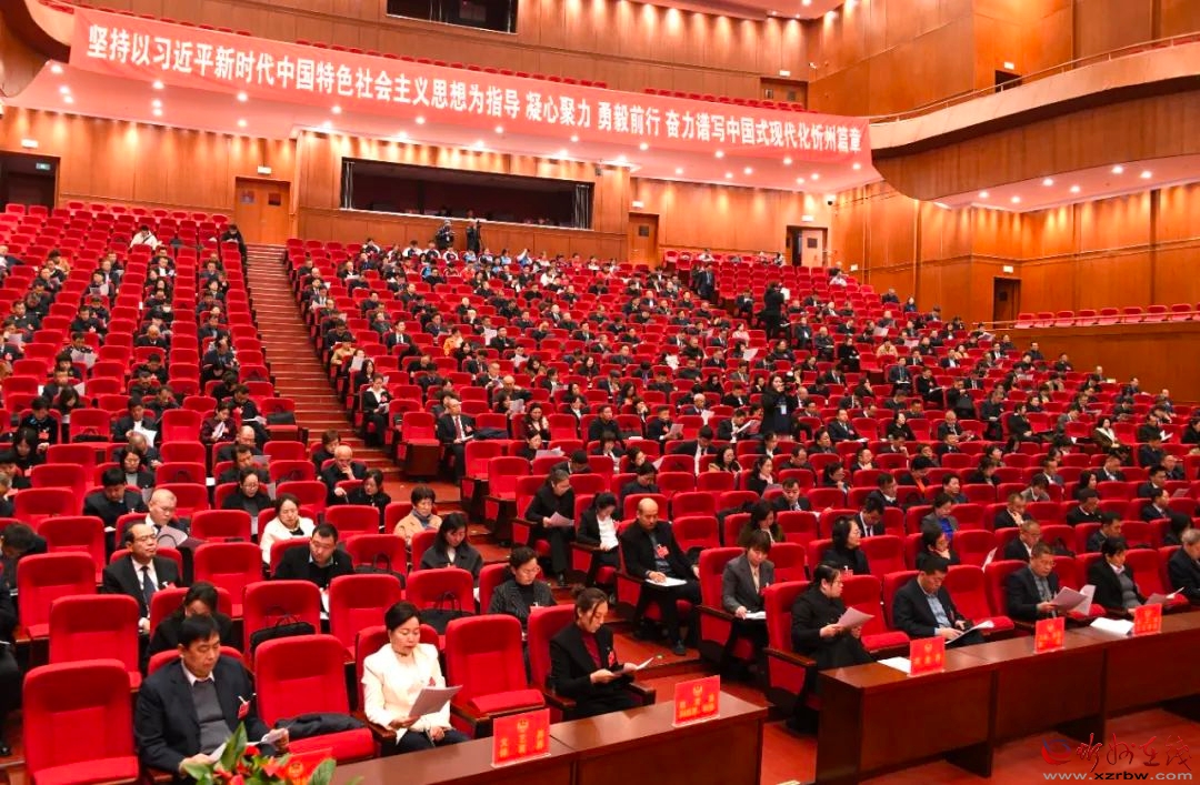 當(dāng)日上午,忻州大劇院大劇場(chǎng)布置簡(jiǎn)樸,氣氛莊重?zé)崃摇V袊?guó)人民政治協(xié)商會(huì)議會(huì)徽懸掛在主席臺(tái)正中,十面鮮艷的紅旗分列兩側(cè)。會(huì)場(chǎng)內(nèi)高高懸掛著大紅橫幅:堅(jiān)持以習(xí)近平新時(shí)代中國(guó)特色社會(huì)主義思想為指導(dǎo),凝心聚力,勇毅前行,奮力譜寫中國(guó)式現(xiàn)代化忻州篇章。