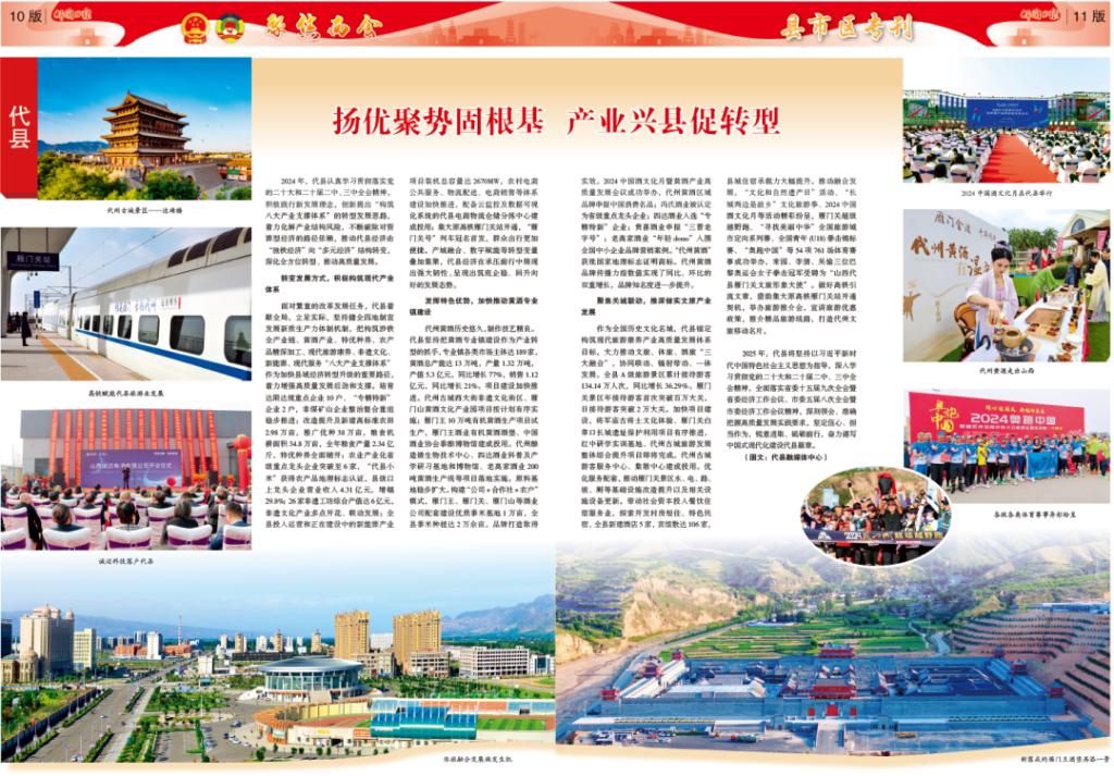 2024年,代縣認真學習貫徹落實黨的二十大和二十屆二中、三中全會精神,積極踐行新發(fā)展理念,創(chuàng)新提出“構筑八大產(chǎn)業(yè)支撐體系”的轉(zhuǎn)型發(fā)展思路,著力化解產(chǎn)業(yè)結構風險,不斷破除對資源型經(jīng)濟的路徑依賴,推動代縣經(jīng)濟由“獨鐵經(jīng)濟”向“多元經(jīng)濟”結構轉(zhuǎn)變,深化全方位轉(zhuǎn)型、推動高質(zhì)量發(fā)展。