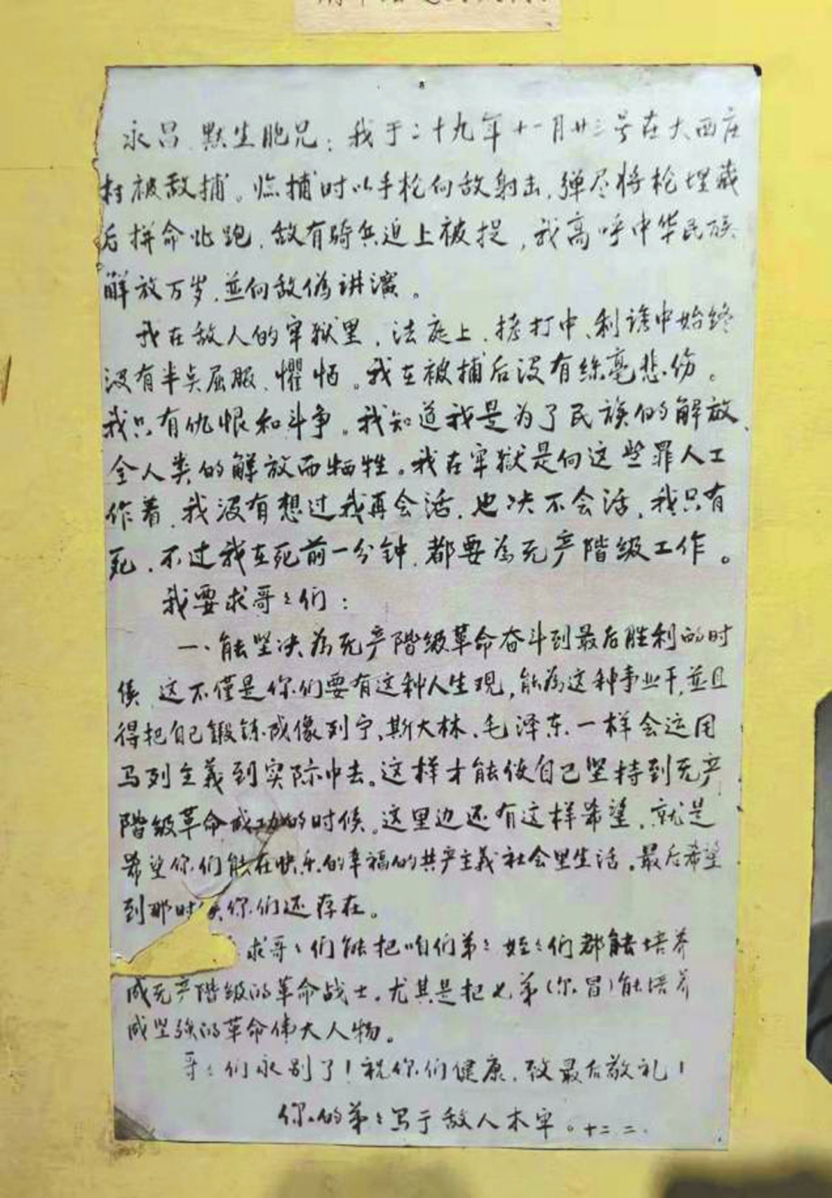 金方昌烈士遺書