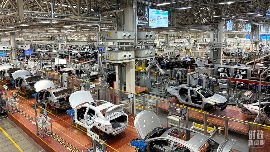 △廣汽埃安總裝車間智能生產(chǎn)線。(總臺央視記者趙化拍攝)