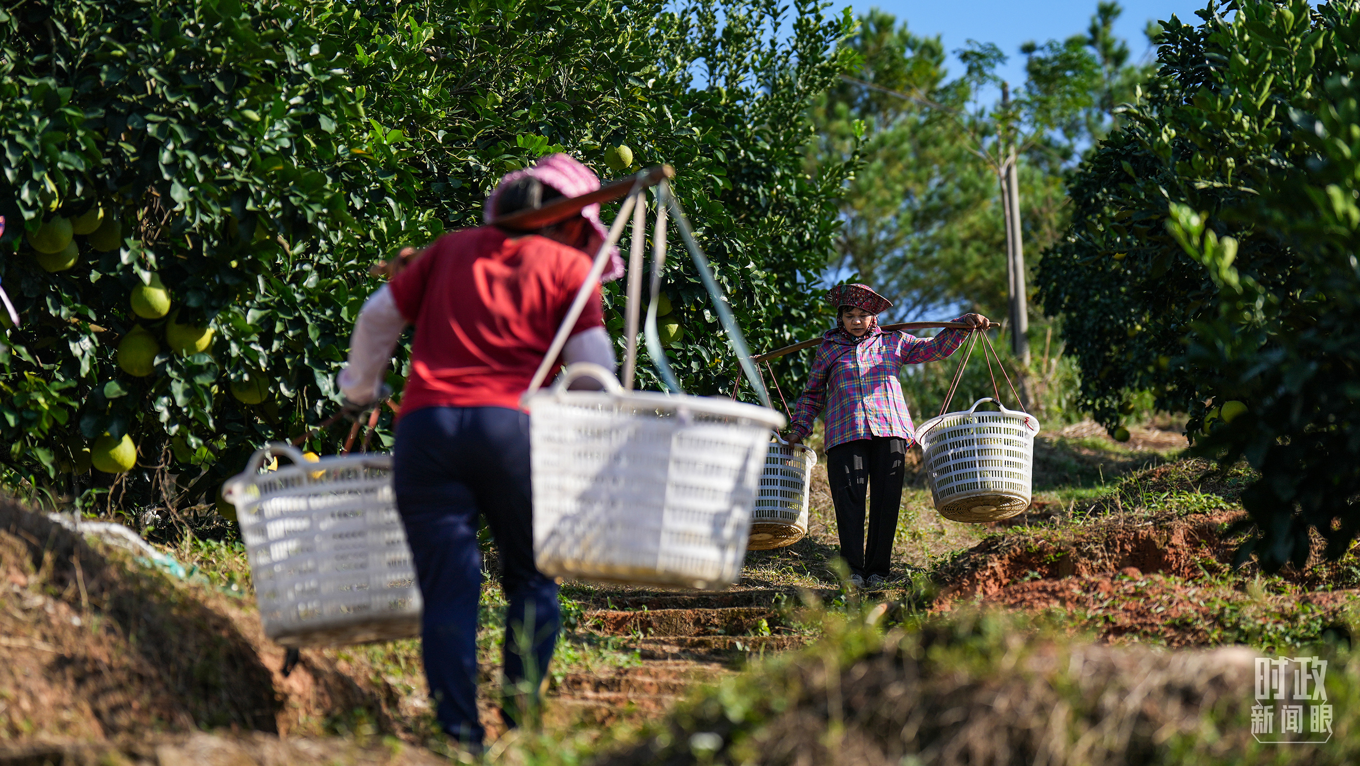 △南福村黃澄澄的柚子掛滿枝頭。(總臺央視記者鄂介甫拍攝)